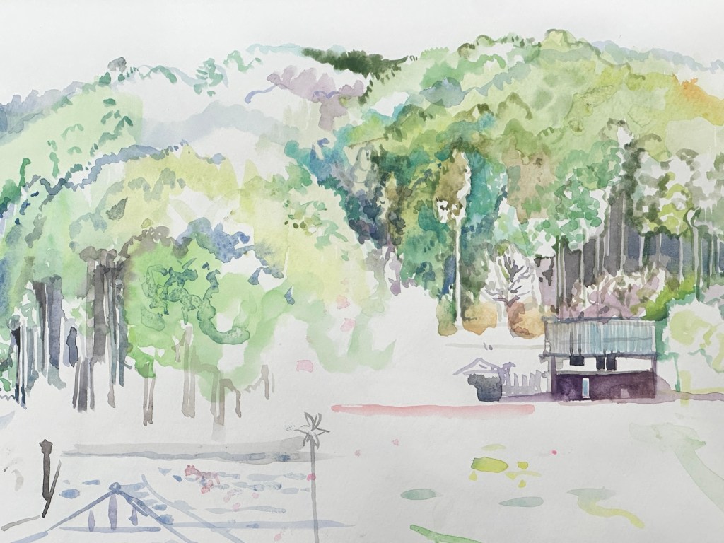 水彩画では、透明水彩を使い、色の重なりや混色の美しさを通して、やわらかな表現を学びます。